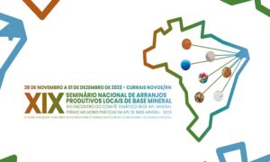 Também acontecerão o XVI Encontro do Comitê Temático Rede Brasileira de Arranjos Produtivos Locais de Base Mineral – CT RedeAPLmineral e o Prêmio Melhores Práticas em APL de Base Mineral 2023