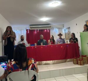 Bento; Pró-Reitora de Extensão, Laura Silva; coordenador do curso, Yulle Gustavo; coordenadora-geral do Programa Mulheres Mil, Daniela Torres; além dos professores Filipe Valentim e Emmanuella Costa, que atuaram diretamente nas atividades formativas do curso.