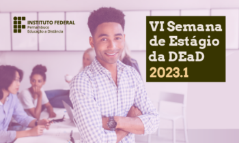 A VI Semana de Estágio da DEaD 2023.1 será em formato online, e a programação vai contar com palestra, relato de experiência e mesa-redonda, com transmissão pelo canal oficial do IFPE no YouTube da EaD.