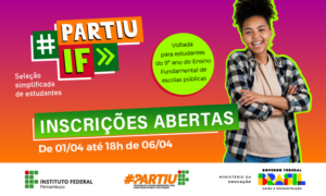 Seleção contempla os Cursos Técnicos Integrados em Informática e Meio Ambiente. Inscrições de 3 a 8 de abril
