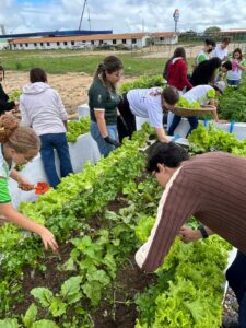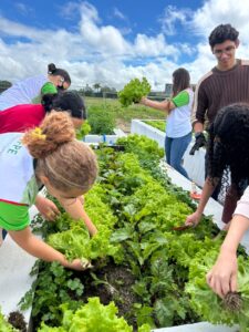 “Recentemente foi realizada a primeira colheita das hortaliças, proporcionando um momento significativo de integração. Os estudantes participaram ativamente da colheita e da distribuição dos alimentos para a comunidade acadêmica, composta por docentes, técnicos administrativos, colaboradores terceirizados e estudantes”, relata Mayara, ressaltando a grande relevância da ação, que traz práticas de ensino, pesquisa e extensão articuladas com sustentabilidade, inovação tecnológica e impacto social.