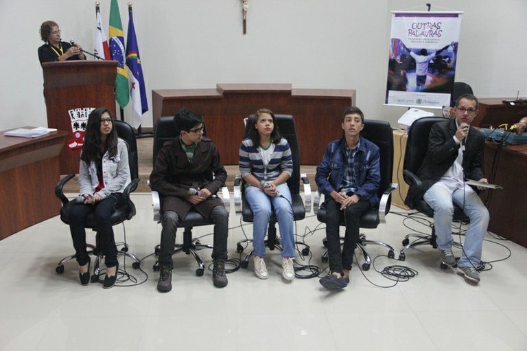 Pela manhã, no auditório da Câmara dos Vereadores, quatro dos dezesseis autores, além do professor orientador, André Padilha, apresentaram aos estudantes, educadores e amantes da literatura o processo de produção, correção e edição das crônicas, como parte integrante das ações do projeto Outras Palavras, da Fundarpe.