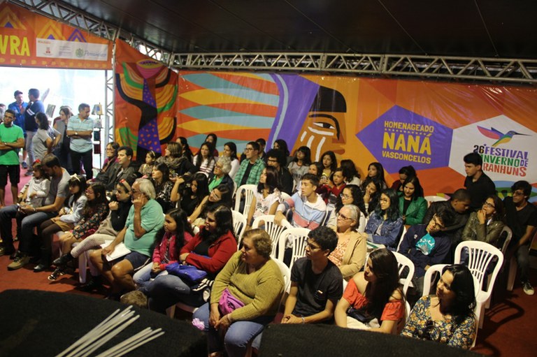 LANÇAMENTO – A Praça da Palavra, polo dedicado à Literatura no FIG, foi palco do lançamento oficial da publicação. Os presentes puderam conhecer um pouco da produção a partir dos relatos de André Padilha e da estudante e também autora, Maria Katarina Lopes.