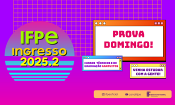 O Instituto Federal de Pernambuco (IFPE) realiza a aplicação de provas do seu Processo de Ingresso 2025.2, no próximo domingo (06/07). Os/as candidatos/as devem conferir o seu local de provas e imprimir o cartão de inscrição acessando a “Área do Candidato”, no site da seleção.