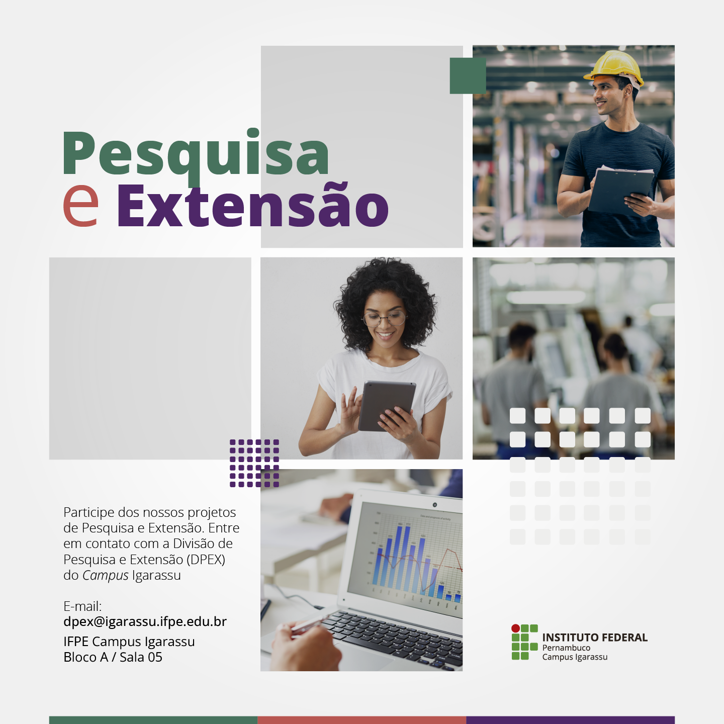 A Divisão de Pesquisa e Extensão (DPEX) do Campus Igarassu implementa as diretrizes da Pró-Reitoria de Extensão (Proext), através do relacionamento com pessoas, instituições e empresas da região, com ações extensionistas, tais como o oferecimento de cursos, palestras e projetos.