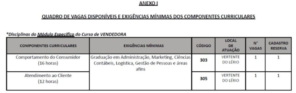 Vagas remanescentes são exclusivas para público externo ao IFPE, para atuação na unidade Vertente do Lério (PE)