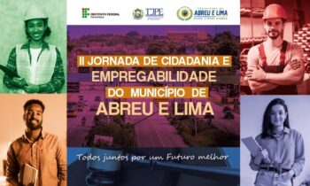 O IFPE promove, na próxima sexta-feira (08), a II Jornada de Cidadania e Empregabilidade do Município de Abreu e Lima. O evento ocorre no IFPE Campus Abreu e Lima, a partir das 8h, e tem como foco a inserção de jovens e adultos no mercado de trabalho, a formação para a cidadania e empregabilidade. A ação é promovida em conjunto com o Tribunal de Justiça de Pernambuco, como parte da Semana Estadual de Conciliação, numa parceria também com a Prefeitura de Abreu e Lima.