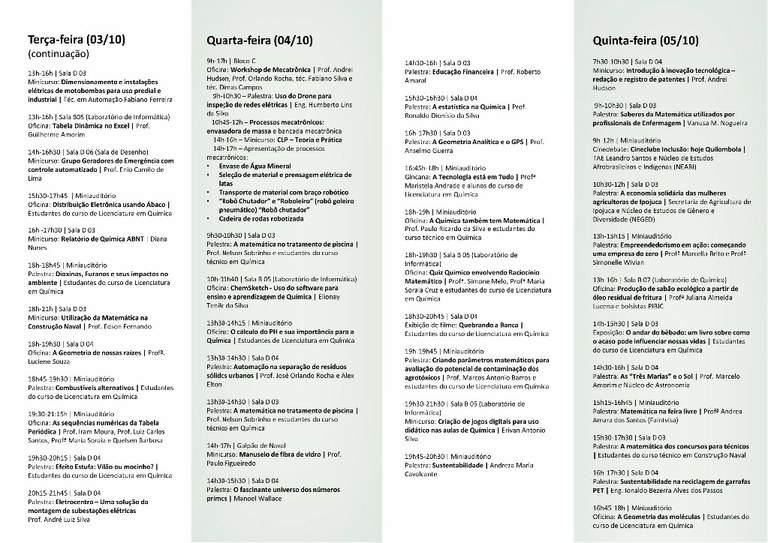 Está disponível a programação da VIII Semana de Ciência e Tecnologia do Campus Ipojuca, que acontece entre os dias 02 e 05 de outubro. O tema da Semana em 2017 é “A Matemática está em tudo!”.