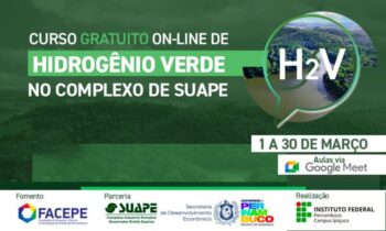 Projeto de extensão tecnológica do IFPE-Campus Ipojuca promoverá, no mês de março, o curso online “Hidrogênio Verde no complexo de Suape”. Estudantes de cursos superiores, bem como profissionais que atuam no complexo de Suape, poderão se inscrever.