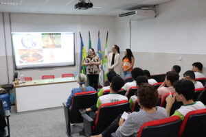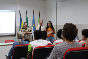 Na segunda-feira (18), representantes da Secretaria Estadual de Meio-Ambiente (SEMAS-PE), da Agência Estadual de Meio Ambiente (CPRH) e da Secretaria de Meio Ambiente do Ipojuca apresentaram a estudantes do Campus uma palestra sobre a interconexão entre água e clima, abordando também desafios para a gestão compartilhada de recursos hídricos. Tratou-se das metas do Objetivo de Desenvolvimento Sustentável número 56, que trata do acesso à água e saneamento. “Já vivemos em um contexto de escassez: hoje, metade da população mundial enfrenta abastecimento de água inadequado”, ponderou Raquel Lucchesi, analista de Educação Ambiental da CPRH.