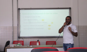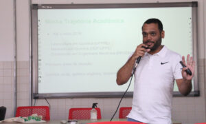 O professor Hércules Santiago (IFPE Ipojuca) apresentou, na última quarta-feira (06), seu relato de experiência na organização e orientação de trabalhos sobre Educação Inclusiva. O convite foi feito Núcleo de Apoio à Pessoa com Deficiência do Campus (Napne), como incentivo a trocas significativas entre os docentes sobre o tema. O encontro foi aberto também a estudantes de Licenciatura e professores de outras instituições.
