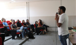 A professora Manuelle Teixeira, coordenadora do Napne, fez a mediação do encontro e falou um pouco sobre o momento da Educação Inclusiva no Campus. “Concluímos há pouco a primeira seleção para o programa de Tutoria de Pares, e temos cinco duplas de estudantes tutores e tutorados. Estamos buscando agora conquistar um maior envolvimento da comunidade como um tudo, pois a inclusão educacional exige a participação de todos”, afirma ela.