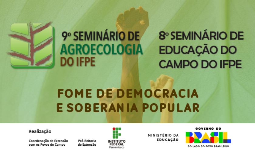 Entre os dias 12 e 14 de maio, o Instituto Federal de Pernambuco (IFPE) realiza o IX Seminário de Agroecologia e o VIII Seminário de Educação do Campo, em Caruaru. Os eventos ocorrerão de forma híbrida, com atividades presenciais no Campus Caruaru do IFPE e no Centro de Formação Paulo Freire, do Movimento dos Trabalhadores Rurais Sem Terra (MST), além da participação remota.