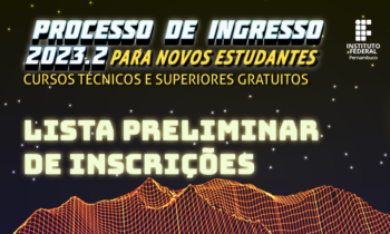 O Instituto Federal de Educação, Ciência e Tecnologia de Pernambuco (IFPE) divulgou a lista preliminar das inscrições do Processo de Ingresso 2023.2. Agora, os candidatos e as candidatas devem acessar o site Ingresso IFPE, e verificar a situação de sua inscrição, que pode se apresentar como “confirmada” ou “não confirmada”. A inscrição que se apresenta como “confirmada” significa que atendeu aos…