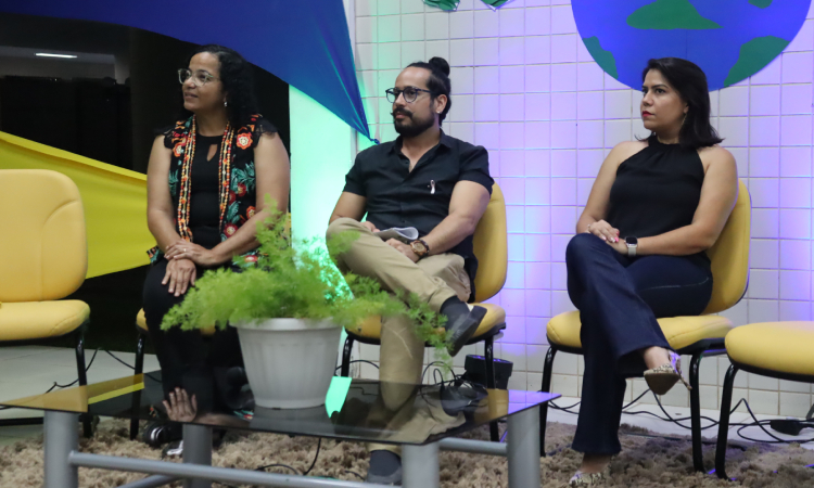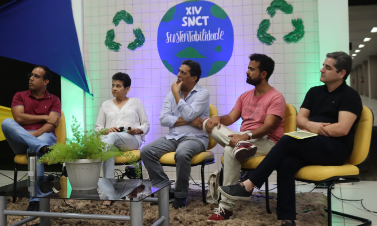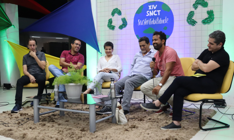 Em seguida, foi realizada uma mesa de conversa sobre o tema da semana, que reuniu professores de diversas áreas do Campus: Célia Oliveira (Segurança do Trabalho); Gabriel Gameiro (Sociologia); Geruso Miranda (Biologia); Alberto Silva (Química); e Edson Fernando (Mecânica). O professor Marcos Ferrante, de História, ficou responsável pela mediação da conversa, que se deu em torno dos objetivos de desenvolvimento sustentável (ODSs) das Nações Unidas e as contribuições de cada área da Ciência para sua consecução. “Imaginem que, no ano passado, uma resolução da ONU reconheceu o direito a viver em um ambiente saudável como um dos Direitos Humanos. Isso de certa forma é espantoso, pois deveria ser algo natural, subentendido”, disse ele.
