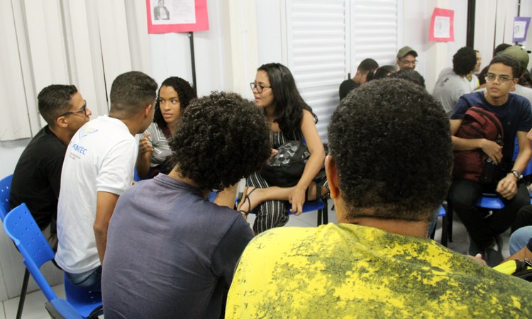 Na quinta (12), os professores da casa Jane Palmeira e Gabriel Gameiro orientaram uma atividade que apresentou a vida e os feitos de mulheres através da história, em diversas épocas e regiões do mundo. “A ideia é propor um exercício dinâmico, em que tanto as mulheres quanto os homens presentes possam buscar elementos de identificação com essas figuras históricas, que muitas vezes são invisibilizadas“, explicou Palmeira.