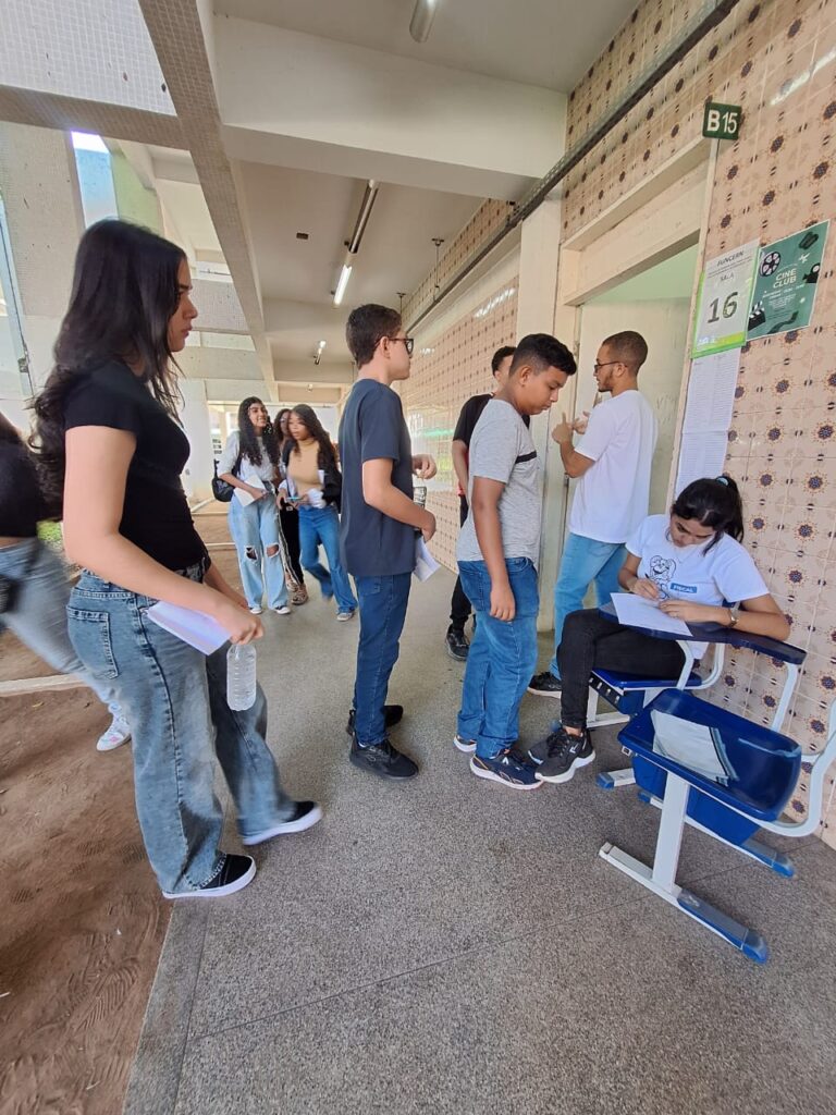 Os amigos Josué Cauã e Yasmim Bezerra chegaram cedo e estavam confiantes em entrarem juntos no curso Técnico Integrado em Eletrotécnica do IFPE Campus Recife. “Quero muito passar, porque eu sei da qualidade do ensino do IFPE”, disse a candidata.