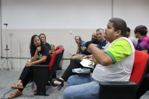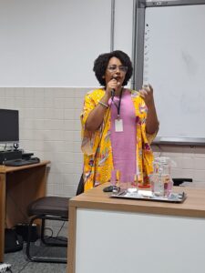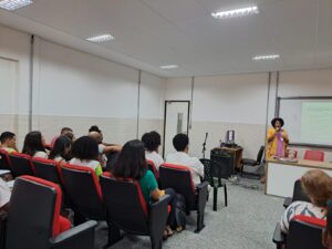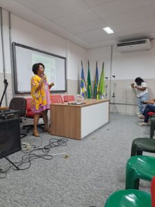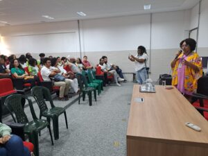 Mirelly Lucena, professora de Libras na UFRPE, contou histórias de seu tempo de estudante. “O surdo tem o direito de buscar todas as adaptações necessárias para aprender e avançar em seus objetivos. É preciso se esforçar para aprender o português escrito, ter coragem para se fazer entender, mas também é essencial que as instituições façam sua parte. A troca de experiências entre municípios, por exemplo, é fundamental”, explica ela.