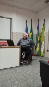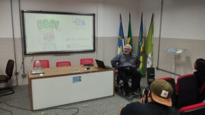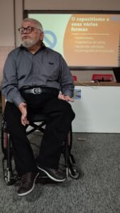 ENCERRAMENTO – Na quinta-feira (28), Luiz Loreto, CEO da Escola de Acessibilidade, proferiu a palestra “Vieses Inconscientes: como se constrói um preconceito”, abordando diversas formas de capacitismo que são ainda comuns na sociedade. Loreto, que é cadeirante, iniciou sua fala comentando que tinha “um problema”: “Meus amigos dizem que meu problema é que sou tricolor”, brincou ele. “Minha deficiência não é um problema, é uma condição que me faz diferente de outras pessoas. Nossa cor da pele, do cabelo, dos olhos, nosso jeito de ser, tudo isso são condições que nos fazem pessoas especiais. Isso chamamos de diversidade”.