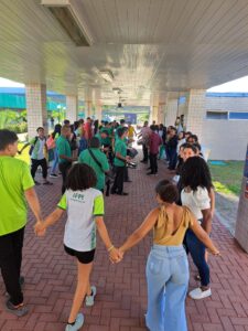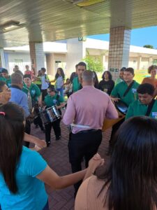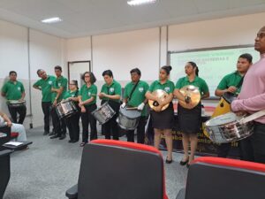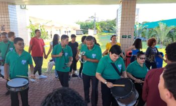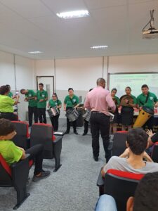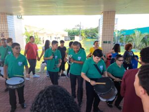 À tarde, o Campus convidou o Grupo de Percussão Especial do Cabo de Santo Agostinho para um momento de conversa e uma apresentação que envolveu a comunidade acadêmica. O grupo de percussão é composto por pessoas com diferentes tipos de deficiência, e se apresenta em eventos diversos da região.
