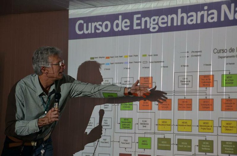 Aproveitar oportunidades em momentos de crise foi uma das mensagens da palestra de Paulo Figueiredo, professor do curso de Construção Naval no IFPE. “O Brasil tem um litoral muito extenso, imenso mar territorial e um potencial pouco explorado. Mandamos milhões de dólares ao exterior, todos os anos, em fretes marítimos, porque quase não temos navios mercantes”, afirmou. A palestra abordou os desafios da formação tecnológica na área e as condições de empregabilidade na indústria naval e metal-mecânica.