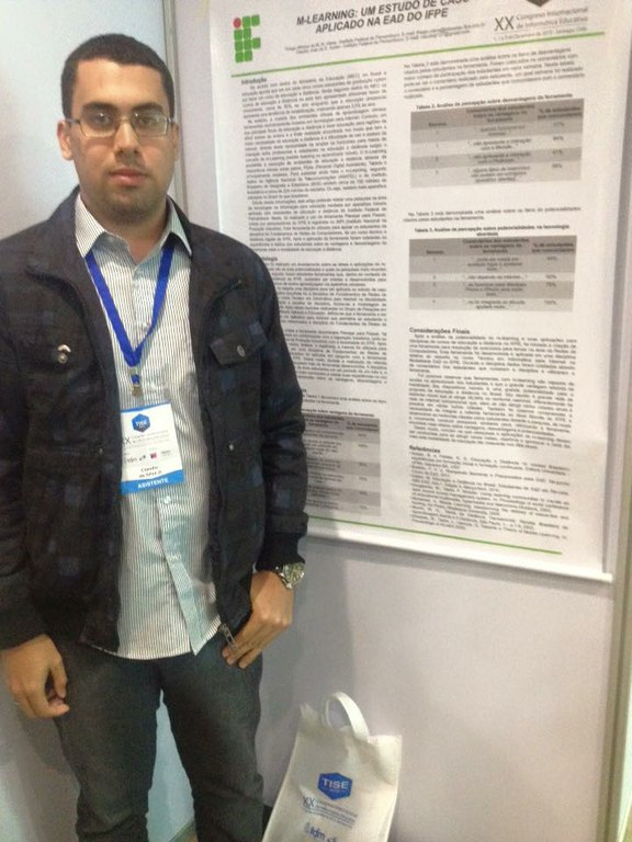 O estudante Cláudio José, do curso de Informática do Campus Jaboatão dos Guararapes e o professor Thiago Viana representaram o IFPE na 20ª edição da Conferência Internacional de Informática Educativa. Na ocasião, ambos apresentaram um artigo sobre a educação móvel aplicada pelo Instituto no EAD, intitulado “M-Learning: um estudo de caso aplicado na EAD do IFPE”. A capital do Chile, Santiago, sediou o evento entre os dias 01 e 03 de dezembro. O intuito do encontro foi difundir experiências internacionais nas áreas de Informática Educativa, Educação a Distância, Engenharia de Software e Educação.