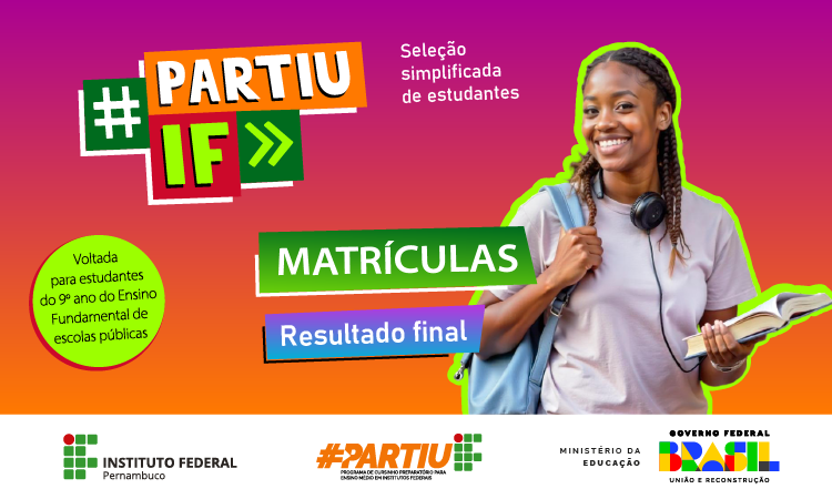 O IFPE Campus Jaboatão publicou, após análise de recursos, o resultado final de matrículas e aferições da 3ª chamada da seleção de estudantes do Programa PartiuIF.
