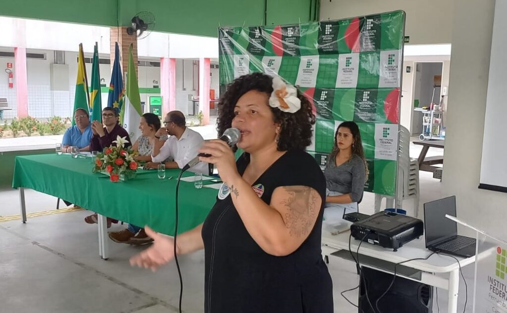 A abertura também contou com a apresentação musical de Djuri Tafnes, professora do Campus Jaboatão.