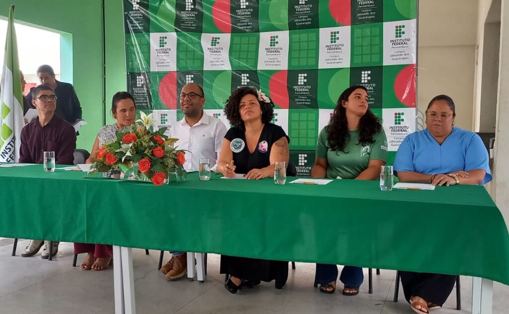 Teve início, na tarde desta segunda-feira (20), a 22ª Semana Nacional de Ciência e Tecnologia no IFPE Campus Jaboatão dos Guararapes, na Área de Convivência. O evento, cujo tema deste ano é “Planeta Água: cultura oceânica para enfrentar as mudanças climáticas no meu território”, teve solenidade de abertura com a equipe gestora do campus e também uma mesa redonda que contou como participantes Luana Rocha, bióloga da organização não governamental Ecoassociados, e da Deputada Estadual Dani Portela (PSOL-PE).