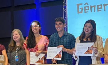 A professora Viviane Aureliano (segunda da esquerda para a direita), do IFPE Campus Jaboatão dos Guararapes, recebeu na manhã desta quinta-feira (08) o XIV Prêmio Naíde Teodósio de Estudos de Gênero, ofertado pela Fundação de Amparo à Ciência e Tecnologia do Estado de Pernambuco (FACEPE) juntamente com a Secretaria da Mulher de Pernambuco (SECMulher/PE). A cerimônia aconteceu no Auditório Cais do Sertão, localizado no centro do Recife.
