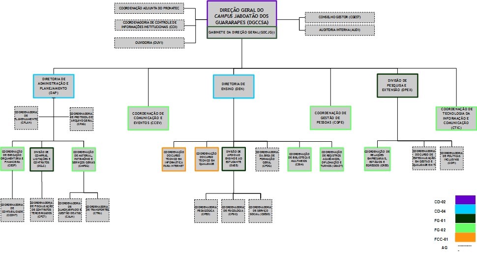 Atualmente, a imagem a seguir representa o organograma do IFPE Campus Jaboatão dos Guararapes.