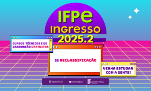 Matrículas para os(as) reclassificados(as) deverão ser feitas de 14 a 17 de agosto, no site ingresso.ifpe.edu.br