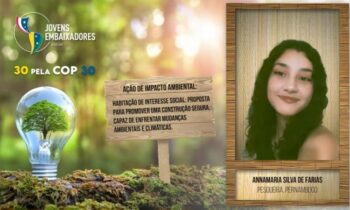 O tema da 23ª edição do Programa Jovens Embaixadores é “30 pela COP 30!”. A proposta apresentada por Annamaria contou com a orientação da professora Luana Stephanie na elaboração do projeto submetido; da professora Rossana Monte, no âmbito da tradução para a Língua Inglesa, e da professora Fabiana Júlia, quanto à redação da carta de recomendação.