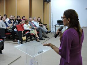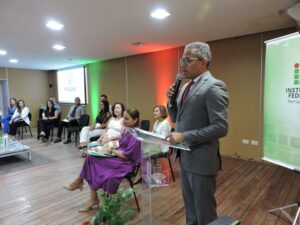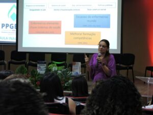 A professora Ana Karina abordou, entre outros pontos, a incidência dos cursos de pós-graduação em Enfermagem no Brasil e o pioneirismo do Instituto Federal de Pernambuco com essa iniciativa, bem como os horizontes que ora se descortinam para a criação de um futuro doutorado em Enfermagem que possa vir a ser implementado pela Instituição.