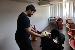 “Ela é o amuleto da família, vai dar certo. Ela vai dar boa sorte para a mãe”, disse Denilson, com a bebê no colo. “Ela está fazendo a prova na área de Enfermagem. É um momento importante pra gente, e estamos torcendo muito.”