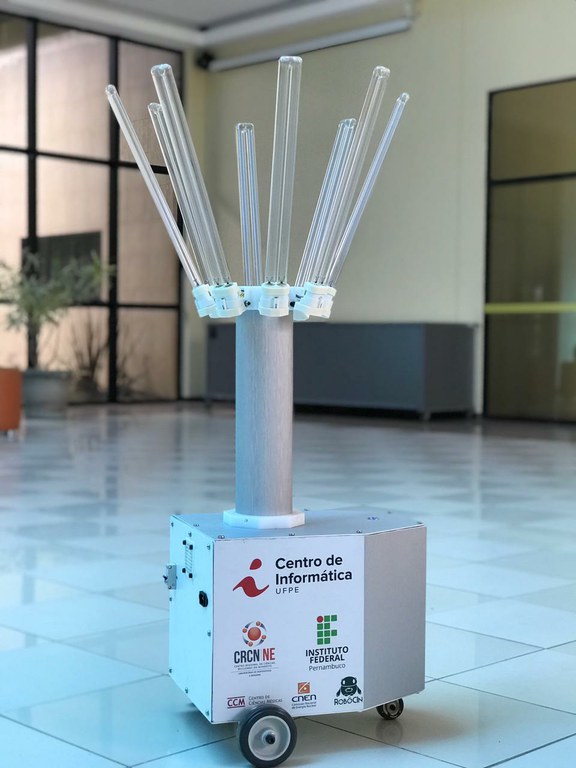 Docentes do Instituto Federal de Pernambuco (IFPE) desenvolveram, em parceria com pesquisadores do Centro de Informática (CIn) da Universidade Federal de Pernambuco (UFPE) e do Centro Regional de Ciências Nucleares do Nordeste (CRCN-NE), um robô inteligente que é capaz de desinfetar ambientes e eliminar micro-organismos, a exemplo do novo Coronavírus. O dispositivo, chamado de Aurora 2.0, tem 80 centímetros de altura e pesa 40 quilos, e seu funcionamento se dá por meio de inteligência artificial e radiação ultravioleta.