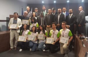 Homenagem – O grupo de estudantes do Campus Caruaru foi homenageado na Câmara Municipal de Bezerros, recebendo votos de aplausos, na terça-feira (18). Entre os medalhistas, dois estudantes são moradores da cidade: Miguel Costa Silva e Anna Luiza Feliciano Silva. Além de Bezerros, também há integrantes de Toritama, São Caitano, Cupira e Caruaru.