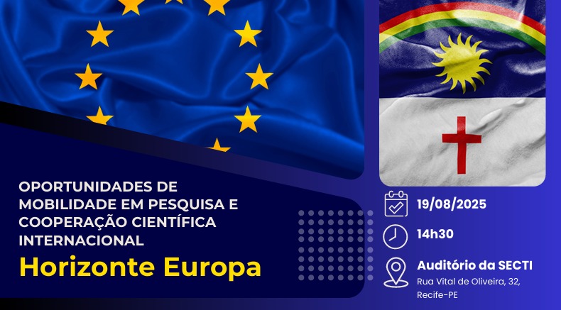 O encontro será realizado no auditório da Secti-PE, das 14h30 às 17h30, e contará com a presença de representantes da União Europeia no Brasil, da rede EURAXESS, da Facepe e da Secti-PE. A ação visa divulgar caminhos para a cooperação internacional, mobilidade científica e financiamento de projetos em parceria com países europeus.