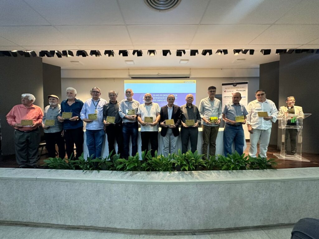 Ao final da cerimônia, foram homenageados os professores que ajudaram a construir o legado de 50 anos de história do curso de Refrigeração e Climatização: Luiz Barboza, Dácio Ferraz, C elestino Lima, Francisco Nascimento, Eudes Oliveira, Nivaldo Filho, Luiz de Lavor, Ageu Matos, Henrique Borba, Frederico Ferreira, Francisco Dantas, Luciano Prestrelo e José Duarte da Silva. A cada um deles foi entregue uma placa como forma de reconhecer sua importância nesses primeiros 50 anos de uma história tão rica, potente e inspiradora.