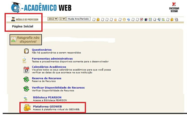 A plataforma está disponível dentro do Sistema QAcadêmico. Portanto, estudantes e servidores devem fazer o login nesse sistema para ter acesso a Gedweb. No QAcadêmico, vai estar disponível uma aba na qual o usuário vai clicar e acessar a plataforma, conforme imagem abaixo: