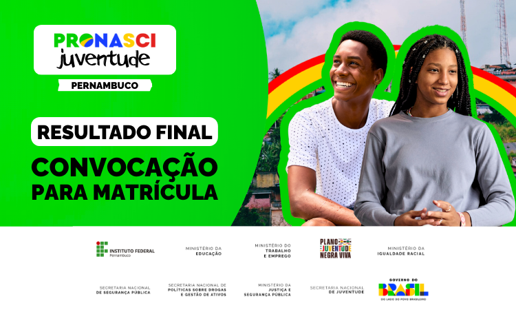 O Instituto Federal de Educação, Ciência e Tecnologia de Pernambuco (IFPE) divulgou o resultado final do Pronasci Juventude em Pernambuco e publicou errata com alteração no cronograma do edital. Com a atualização, já estão definidas as novas datas para matrícula dos(as) candidatos(as) selecionados(as).