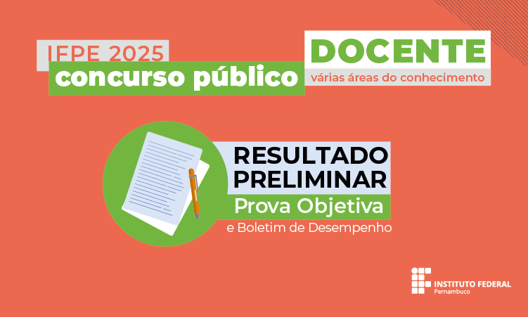 O Instituto Federal de Pernambuco (IFPE) divulgou, nesta segunda-feira (10), o resultado preliminar da prova objetiva do concurso público para docentes do Ensino Básico, Técnico e Tecnológico (EBTT). A publicação ocorre em parceria com a Fundação de Apoio à Educação e ao Desenvolvimento Tecnológico do Rio Grande do Norte (Funcern), instituição responsável pela execução do certame.