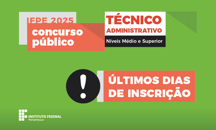 Continuam abertas, até o dia 04 de setembro, as inscrições do concurso público para cargos técnico-administrativos em Educação (TAE’s) do Instituto Federal de Pernambuco (IFPE). A taxa de inscrição varia entre R$75, R$120 e R$150, a depender do cargo escolhido, e poderá ser paga via Pix ou boleto bancário até o dia 05 de setembro. As vagas contemplam diversas áreas de formação que vão de nível médio completo e médio profissionalizante até superior.
