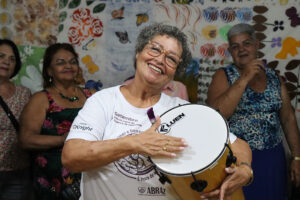 A aposentada Aline Cerqueira participou de várias das oficinas oferecidas. “Estava presente na primeira, de musicoterapia”, contou. Para ela, as atividades colaboram para o seu enriquecimento pessoal, tanto no aprendizado quanto no aspecto social. “A gente aprende, conhece pessoas e troca experiências.” Aline também participa de outras ações em diferentes instituições, como coral e grupos da terceira idade. “Eu não sou velha, nem idosa. Sou vaidosa. Não sinto essa idade de 76 anos”, comemorou.