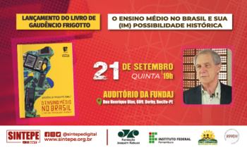 No próximo dia 21 de setembro, o Instituto Federal de Educação, Ciência e Tecnologia (IFPE), em conjunto com a Fundação Joaquim Nabuco (Fundaj), o Sindicato dos Trabalhadores e Trabalhadoras em Educação de Pernambuco (SINTEPE), o Comitê Pernambucano de Educação do Campo (CPEC) e a Rede de Pesquisa sobre Políticas para o Ensino Médio (RPPEM), promove o lançamento do livro “O Ensino Médio no Brasil e sua (im)possibilidade histórica”, do professor Gaudêncio Frigotto.