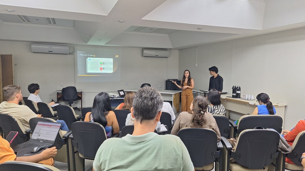 Estudantes Anna Júlia e Lucas Lima, integrantes da empresa júnior, explicaram as etapas e metodologia