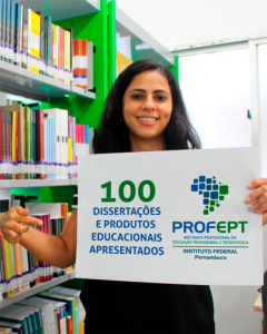 O Mestrado Profissional em Educação Profissional e Tecnológica (ProfEPT) do Instituto Federal de Pernambuco (IFPE) – Campus Olinda alcança, nesta quinta-feira (16), um marco histórico: a defesa pública de sua 100ª dissertação. A autora é Taciana Halliday da Mesquita Pimentel, servidora da Reitoria, que desenvolveu a pesquisa “Os significados do trabalho para docentes da Educação Profissional e Tecnológica do Instituto Federal de Pernambuco”, sob a orientação do professor José Nildo Alves Caú.
