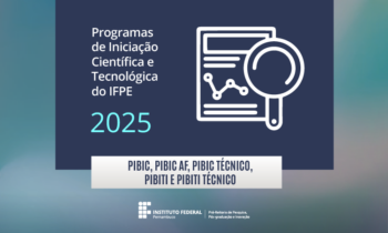 A seleção contempla os programas PIBIC, PIBIC-Técnico, PIBIC-Ações Afirmativas (PIBIC-Af), PIBITI e PIBITI-Técnico, destinados a estudantes de cursos técnicos e superiores da instituição, que poderão participar como bolsistas ou voluntários em projetos de pesquisa e inovação orientados por servidores efetivos do IFPE.