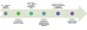 A partir disso, foi elaborada a primeira versão do Plano de Logística Sustentável do IFPE, em 2013. Em 2016, foi constituída a Comissão de Elaboração da Política Ambiental do IFPE, que foi aprovada em 2017.