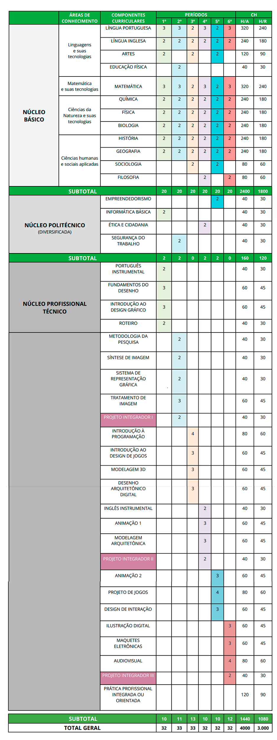 Os estudantes percorrerão todas as disciplinas ligadas aos módulos de Linguagens e suas Tecnologias, Matemática e suas Tecnologias, Ciências da Natureza e suas Tecnologias e Ciências Humanas e Sociais Aplicadas. Ao mesmo tempo, desenvolverão atividades relativas às disciplinas técnicas como tratamento de som, imagem e efeitos especiais, produção textual, criação de roteiro, ilustração e animação, desenho assistido por computador, desenvolvimento de aplicativos e conteúdo para web e maquetes eletrônicas.
